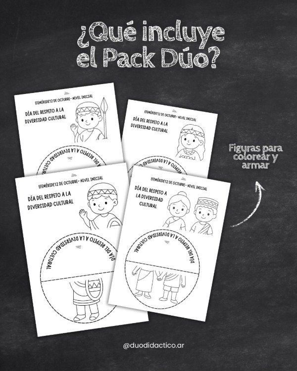 Con este pack, los más pequeños podrán pintar, recortar y armar figuras de los personajes característicos de esta fecha, aprendiendo sobre nuestras raíces y el valor de respetar y celebrar las distintas culturas. 💫