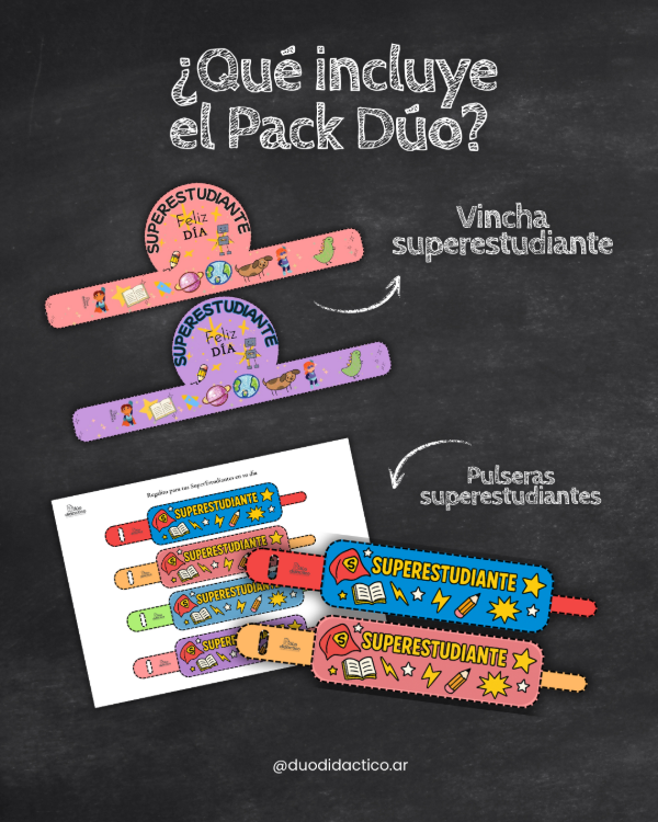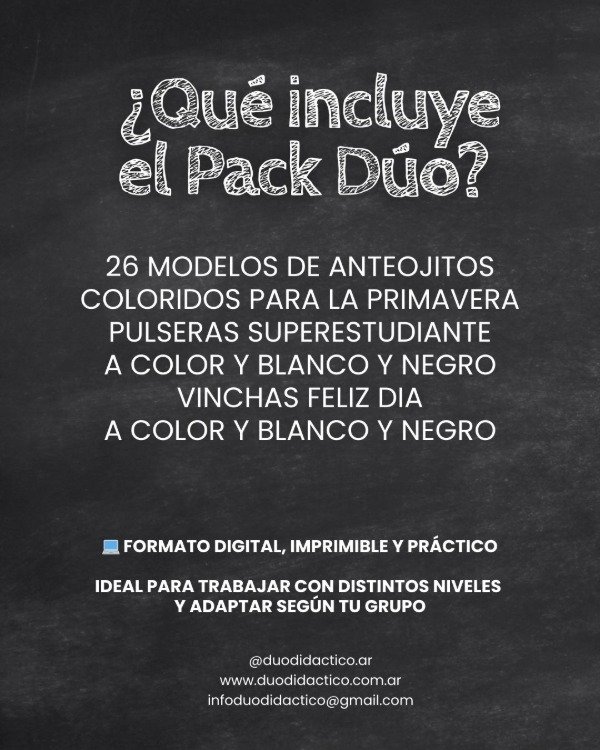 Incluye pulseras y vinchas para los superestudiantes y anteojitos divertidos y coloridos para recibir la llegada de la primavera de una manera original, creativa y festiva. 🌼✨